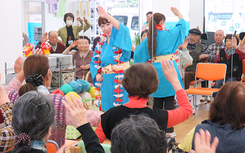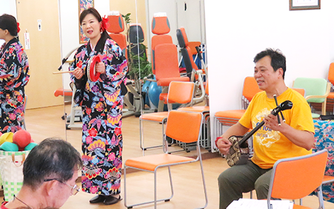 音楽レクレーション・沖縄三線演奏会・琉球舞踊ステージ・介護予防教室・認知症予防体操教室・体力測定・ハッピー沖縄エクササイズ・折り紙教室などの様々な芸能や連動のイベントを開催しています。利用者様限定のイベントや利用者様、会員様以外のみなさまにも、ご参加いただけるイベントもございます。