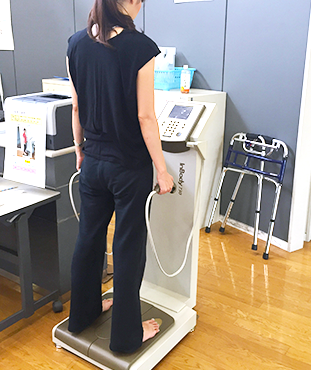ハッピーハートの運動型DS利用者様と、フィットネスジム会員様には定期的に体成分測定を行って筋肉量のチェックなどを行っています。
